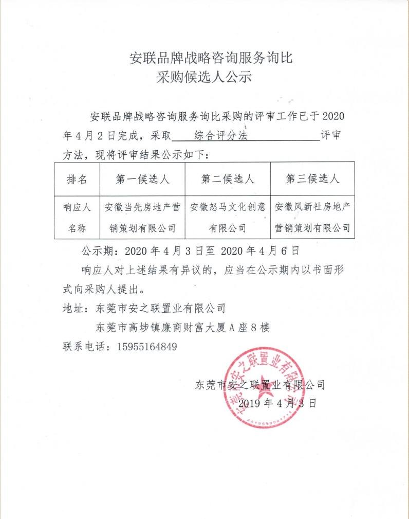 安聯(lián)品牌戰略咨詢(xún)服務(wù)詢(xún)比采購候選人公示